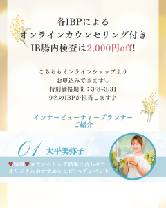 IBPによるオンラインカウンセリング付き、IB腸内検査も割引価格:3月31日まで